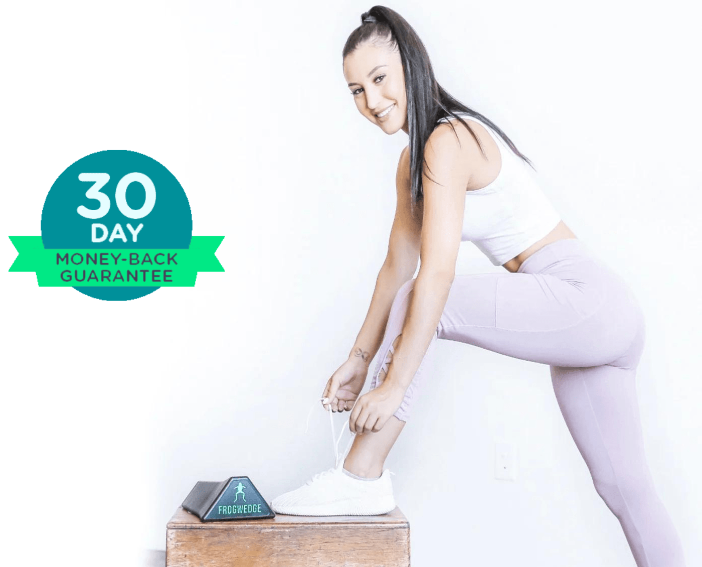 The FrogWedge puts you in the perfect position to activate your glutes. Just place your feet on the wedge, push and squeeze.